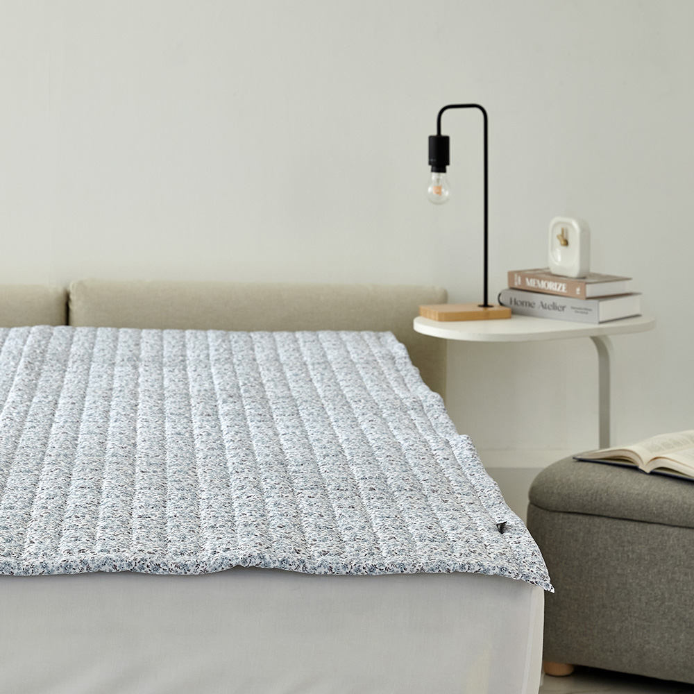 두툼하고 부드러움. 카페트라기엔 좀 작고, 토퍼 위에 놓으니 사이즈 딱 맞음